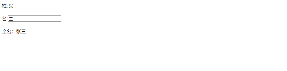 | 姓:<input type="text" v-model="firstName"><br /><br /> |